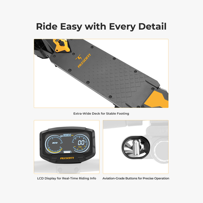 Objevte bezkonkurenční zážitek z jízdy s naším elektrickým skútrem Ausom L1 EU.Tato koloběžka, vybavená systémem odpružení ShocFree, nabízí výjimečný komfort na všech městských površích, absorbuje nerovnosti a nerovnosti pro hladkou a stabilní jízdu.S bezdušovými pneumatikami 10" × 2,75" náš skútr zaručuje optimální rovnováhu a vynikající pohodlí.