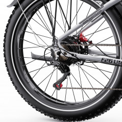 DUOTTS F26 Lite je vybaven výkonným 750W motorem.Tato konfigurace umožňuje lézt na svazích až 30°.Užijte si plynulou akceleraci a výjimečný výkon ve všech terénech. Rychlost je omezena na 25 km/h, pokud je kolo neomezené, rychlost překračuje 45 km/h