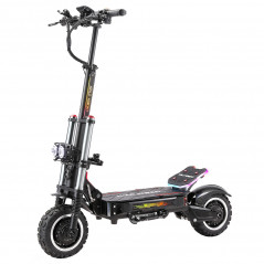 | Specifikation | Maksimal hastighed: 80-95 km/t Hastighedsniveau: 3 Rækkevidde: 40-80 km Maksimal belastning: 150 kg (330 lb) Anbefalet rytterhøjde: 150-200 cm (4'11"-6'7") Hævevinkel: 30° Vandtæt: IP54 Batteri: 60V 38,4Ah lithiumbatteri Motor: børsteløs motor Maksimal effekt: 2 x 60 V 3000 W Oplader: 60V 3A Opladningstid: 5 til 7 timer Bremse: Hydrauliske bremser for og bag Bremseafstand: ≤ 4 m Forhjulsophæng: Hydraulisk affjedring foran Baghjulsophæng: Fjederophæng bagtil Styredæmper: Ja Display: central LCD-skærm + NFC Bluetooth: Bluetooth-parring, Scooterlås, Køremålinger i realtid, Skift af køretilstand, Fartpilot, Brugerdefinerede scooterindstillinger, Musikafspilning Forbelysning: Ja Baglygte: Ja Bremselys: bagbremselys Blinklys for og bag RGB-lys: Ja Markeringslys: Ja Ramme: aluminiumslegering Dæk: 11-tommer pneumatiske terrændæk Anbefalet dæktryk: 3,5 bar (50 PSI) |