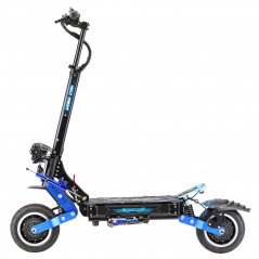| Specifikation | Maksimal hastighed: 80-95 km/t Hastighedsniveau: 3 Rækkevidde: 40-80 km Maksimal belastning: 150 kg (330 lb) Anbefalet rytterhøjde: 1,50 m til 2,00 m (4'11" til 6'7") Hævevinkel: 30° Vandtæt: IP54 Batteri: 60V 38,4Ah lithiumbatteri Motor: børsteløs motor Maksimal effekt: 2 x 60 V 3000 W Oplader: 60V 3A Opladningstid: 5 til 7 timer Bremse: Hydrauliske bremser for og bag Bremseafstand: ≤ 4 m Forhjulsophæng: Forhjulsophæng Baghjulsophæng: Affjedring bagtil Styredæmper: Ja Display: central LCD-skærm + NFC Bluetooth: Bluetooth-parring, Scooterlås, Køremålinger i realtid, Skift af køretilstand, Fartpilot, Brugerdefinerede scooterindstillinger, Musikafspilning Forbelysning: Ja Baglygte: Ja Bremselys: bagbremselys Blinklys for og bag RGB lys: Ja Markeringslys: Ja Ramme: aluminiumslegering Dæk: 11 tommer pneumatiske landevejsdæk Anbefalet dæktryk: 3,4 bar (50 PSI) |