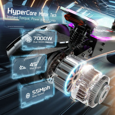 | Specifikation | Motor: 3500W*2 Batteri: 60V 38Ah Dæk: 12 tommer Maksimal hastighed: 80 km/t Rækkevidde: 96 km Bremse: Skivebremser Affjedring: Dobbelt affjedringssystem Maksimal belastning: 150 kg |