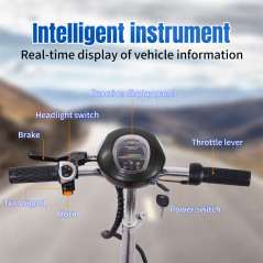 | Spezifikation | Motor: 350 W Batterie: 24V 12Ah Höchstgeschwindigkeit: 20 km/h Reichweite: 12 km Bremse: Trommelbremse Maximale Belastung: 120 kg |