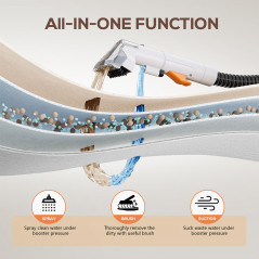 Mit seiner robusten Leistung von 450 W liefert unser Teppichreiniger eine beeindruckende maximale Saugleistung von 11 kPa und sorgt so für eine gründliche Reinigung von Flecken auf Teppichen und Polstern.
