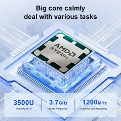 | Επεξεργαστής και σύστημα | Επεξεργαστής: AMD Ryzen 5 3500U Πυρήνας και καλώδια: 4 πυρήνες και 8 καλώδια Συχνότητα βάσης: 2,1 GHz Συχνότητα Turbo: 3,7 GHz Λιθογραφία: 12 nm Έξυπνη κρυφή μνήμη: 4 MB Λειτουργικό σύστημα: Windows 11 Κατανάλωση ισχύος: 15W Γραφικά: AMD Radeon Vega 8 RAM: 16 GB DDR4 3200 MHz SSD: 512 GB |