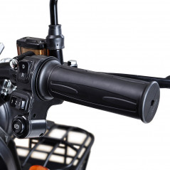 Εξοπλισμένο με ενισχυμένα καλάθια αποθήκευσης μπροστά και πίσω, αυτό το τρίκυκλο προσφέρει επίσης αποθηκευτικό χώρο κάτω από το πίσω κάθισμα.Ο αντιολισθητικός σχεδιασμός εξασφαλίζει ασφαλή οδήγηση ακόμα και σε απότομες πλαγιές.