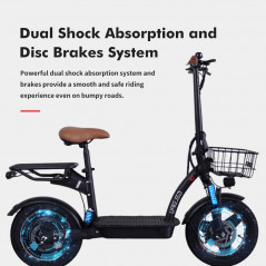 | Προσδιορισμός | Ισχύς κινητήρα: 250 W (μετά το ξεκλείδωμα: 500 W) Ροπή: 50 Nm Χωρητικότητα μπαταρίας: 48 V 17,5 Ah Μέγιστη ταχύτητα: 25 km/h (μετά το ξεκλείδωμα: 32 km/h) Ταχύτητες διέλευσης: 15 km/h, 20 km/h, 25 km/h Μέγιστη αυτονομία: 100 km Αναρρίχηση: ≤10° Σύστημα ανάρτησης: Πιρούνι ανάρτησης + μηχανικό αμορτισέρ Φρένα: Διπλά μηχανικά δισκόφρενα 140mm Χρόνος φόρτισης: 6 έως 8 ώρες Ελαστικά: Ελαστικά πεπιεσμένου αέρα 14 ιντσών Χωρητικότητα φόρτωσης: 120 kg Αναδιπλούμενο τιμόνι: Ναι |