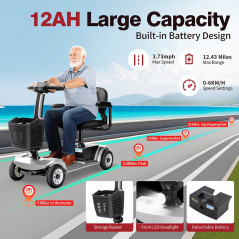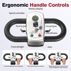 Dotado de un motor de 250W 24V y capaz de alcanzar una velocidad máxima de 6 km/h, este patinete ofrece una conducción suave y controlada, ideal para personas mayores y con movilidad reducida.Su sensible sistema de frenado magnético garantiza un frenado preciso y suave, garantizando la seguridad en cada viaje.