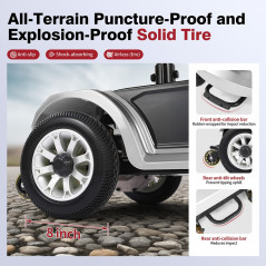 Los neumáticos macizos de 8 pulgadas en la parte delantera y trasera son a prueba de explosiones y antideslizantes, lo que proporciona un agarre óptimo en una variedad de superficies de carretera.Gracias a un ángulo de ascenso máximo de 12°, supera fácilmente pendientes y superficies irregulares, garantizando un desplazamiento con total tranquilidad.