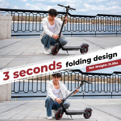 Egylépcsős összecsukható mechanizmusának köszönhetően az iScooter W5 elektromos robogó mindössze három másodperc alatt összecsukható a maximális hordozhatóság érdekében.Ideális városi kirándulásokhoz.