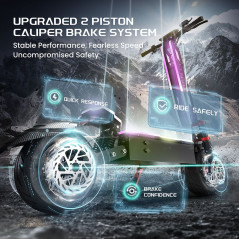 | Specyfikacja | Silnik: 3500 W*2 Bateria: 60V 38Ah Opony: 12 cali Prędkość maksymalna: 80 km/h Zasięg: 96 km Hamulec: Hamulce tarczowe Zawieszenie: Podwójny układ zawieszenia Maksymalne obciążenie: 150 kg |