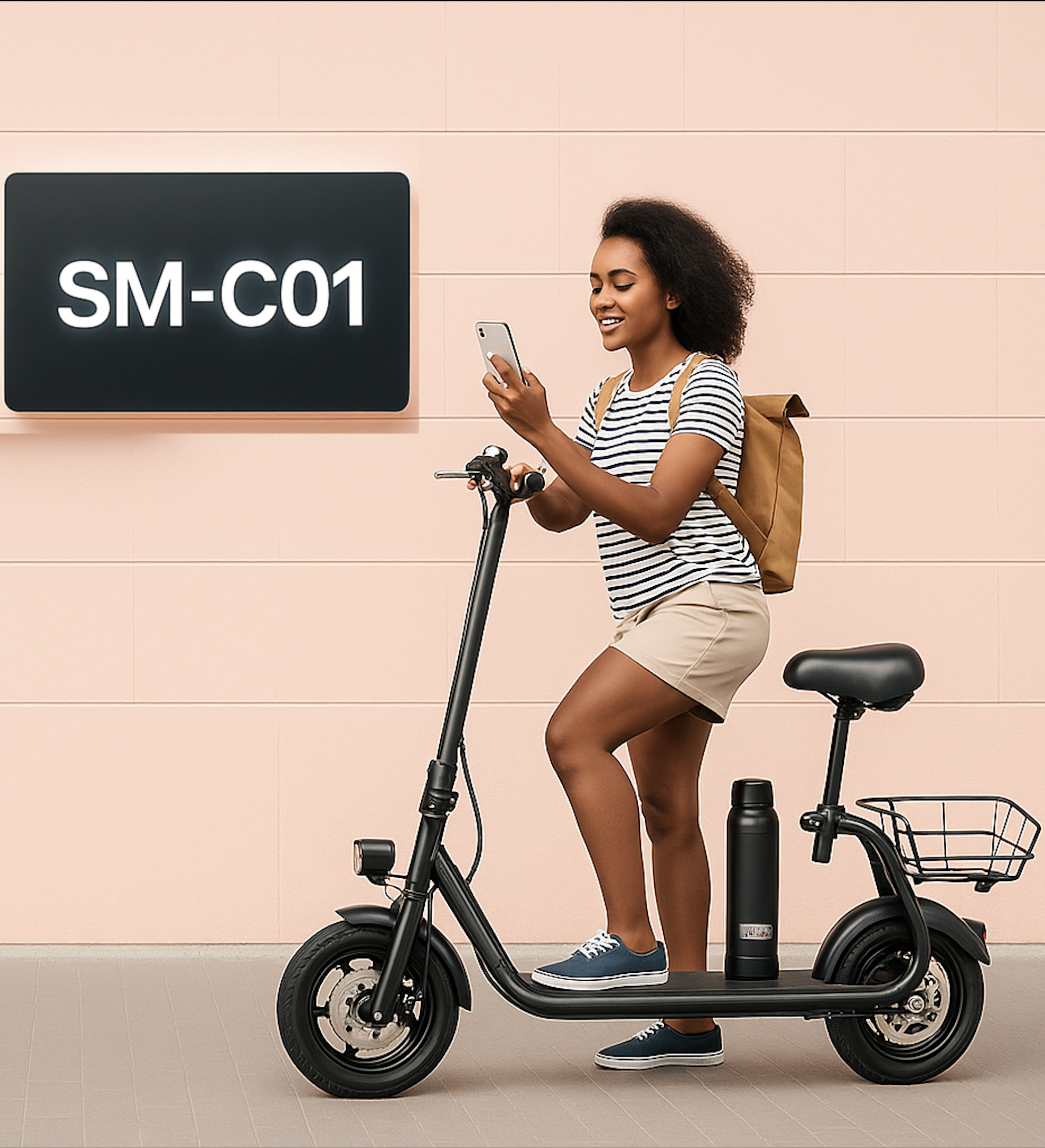 Dzięki silnikowi 350W SM-C01 oferuje wyjątkową wydajność, aby stawić czoła zboczom do 14 stopni.Łatwo sięgnij do 30 km/h na wycieczki do miasta.Zakresywane przy 25 km/h, jeśli nieokiełzny, maksymalna prędkość wynosi 30 km/h