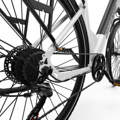 Amortyzowany przedni widelec skutecznie tłumi wibracje i nierówności drogi, zapewniając płynniejszą, wygodniejszą i bardziej kontrolowaną jazdę, nawet na nierównych nawierzchniach.