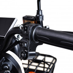 Equipado com um potente motor de 1800 W, este triciclo elétrico oferece potência ideal para uma condução estável em todas as condições de estrada, com velocidade máxima de 25 km/h.