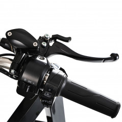 Equipado com um grande freio a disco hidráulico na frente (20 cm de diâmetro) e um freio a tambor na parte traseira, este triciclo garante ótima segurança.Os travões de mão dianteiros e traseiros, bem como o bloqueio automático da velocidade P garantem controlo total.