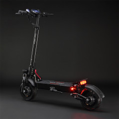 | Caietul de sarcini | Viteza maxima: 65 km/h Nivel de viteza: 3 Raza maxima de actiune: 45 km Sarcina maxima: 120 kg Înălțimea recomandată a călărețului: 150–200 cm (4’11”–6’7”) Unghi de ridicare: 20° Rezistent la apă: IP54 Baterie: 52V 21Ah Motor: 1200W*2 Timp de încărcare: 5 până la 7 ore Frâne: frâne pe disc față și spate Suspensie: Suspensie cu arc față și spate Display: ecran LED central + NFC Sistem de iluminare: lumina fata, lumina spate, lumina frana, semnalizatoare Anvelope: anvelope fără cameră de 10 inci |