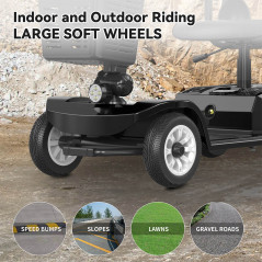 Echipat cu un motor de înaltă performanță de 24 V și 180 W, precum și cu o viteză maximă de 6 km/h, acest scuter este special conceput pentru a oferi o conducere stabilă și sigură persoanelor în vârstă și persoanelor cu mobilitate redusă.Sistemul său de frânare magnetic receptiv asigură o frânare fiabilă și lină, oferind o protecție optimă în fiecare călătorie.