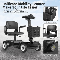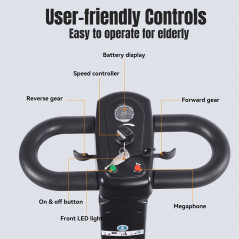 Utrustad med en högpresterande 24 V och 180 W motor samt en topphastighet på 6 km/h, är denna skoter speciellt designad för att ge stabil och säker körning för äldre och personer med nedsatt rörlighet.Dess lyhörda magnetiska bromssystem säkerställer pålitlig och smidig bromsning, vilket ger optimalt skydd på varje resa.