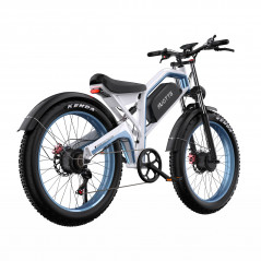Specifikationer | Ram: 26 tums ram i aluminiumlegering Vattentäthet: IPX4 Batteri: Samsung 48V 20Ah batteri Motor: 48V 750W x 2 (Motormärke: PY) Växellåda: Shimano 7-växlad Display: 5-nivåer multifunktions LCD-skärm Körlägen: Rent elektroniskt läge, pedalhjälpläge, pedalläge Broms: DYISLAND hydraulisk broms Sätesrör: Aluminiumlegering Däck: 26 x 4,0 tum uppblåsbara däck Stänkskydd: Stänkskydd fram och bak Gasreglage: 158DX Half-Turn Electric Throttle Med bakre ställ Maximal stigningsvinkel: 55° Laddningstid: 8-10 timmar N26 batteristorlek: 35 x 12 x 9 cm, Nettovikt: 5,5 kg Fällbar: Nej Max belastning: 200 kg Lämplig höjd: 170-200 cm Maxhastighet: 55 km/h Sadelhöjd: avstånd från sadel till mark 89-102 cm Laddare: 54,6V 2A (ingång: 110V-240V) Styrenhet: Sinusvågskontroll (48V 25A Jing Hui-kontroller) QQ: främre styrenhet, HQ: bakre styrenhet Skivdiameter: 160 mm Räckvidd: Rent elektroniskt läge 40-60 km, trampassisterat läge 120-150 km (beroende på väglag, hastighet och förarens vikt) Fjädring: Främre och bakre fjäderstötdämpare (ej justerbar) Framgaffelväg: 120 mm |