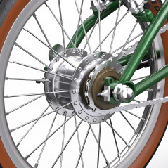 De kompakta men robusta däcken på 16 x 1,35 tum ger en mjuk gång, utmärkt grepp och enkel manövrerbarhet i stadsmiljöer.